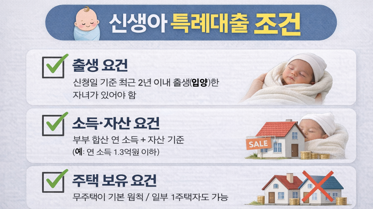 | 👉신생아 특례대출 조건 1부, 나는 받을 수 있을까? 소득·주택·혼인 조건 완전정리 (0) | 2026.01.19 |