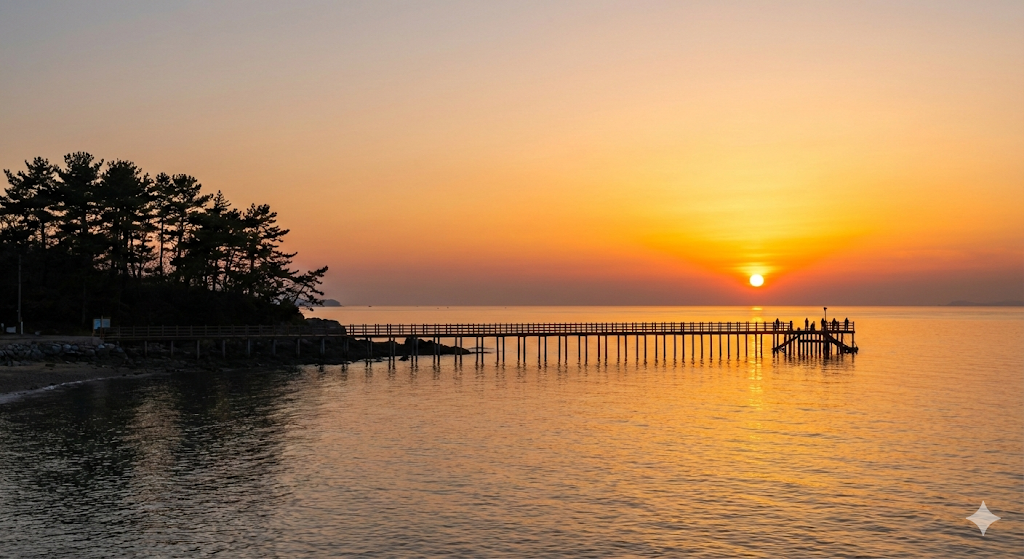 • Point 명당 포인트: 주차 후 걸어서 '궁평 낙조길(데크 산책로)' 위나 '피싱 피어(바다 위 낚시 다리)' 끝까지 가보세요. 장애물 없는 완벽한 수평선 일몰을 감상할 수 있습니다.